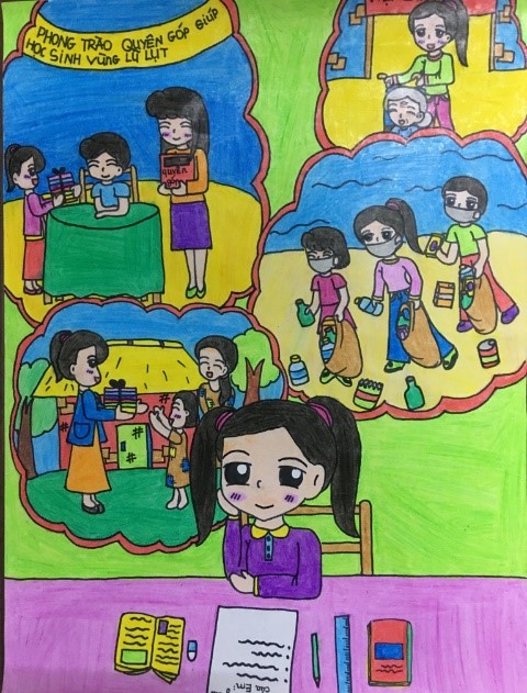 Vẽ tranh theo chủ đề những tấm lòng nhân ái.