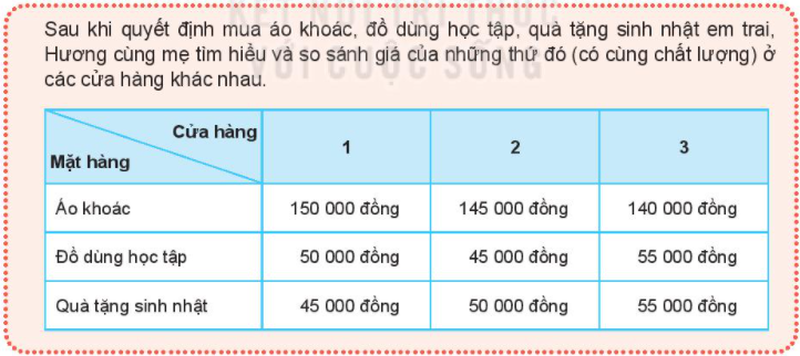 Nếu là Hương, em sẽ chọn mua các mặt hàng đó ở những cửa hàng nào. Qua tìm hiểu cách sử dụng tiền của Hương, em hãy cho biết thế nào là chi tiêu hợp lí khi số tiền hạn chế.