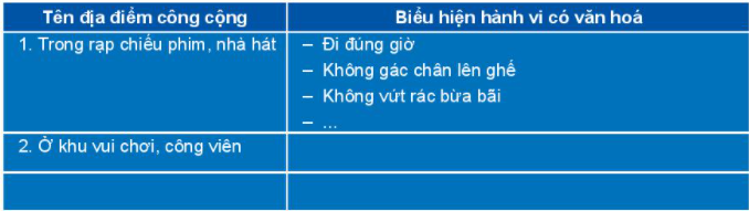 Thảo luận những biểu hiện của hành vi có văn hóa nơi công cộng theo gợi ý: