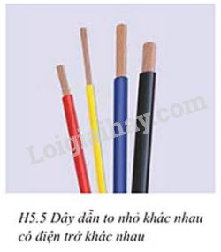 Người ta mắc lại mạch điện theo sơ đồ H5.3. Lần lượt thay đổi các dây dẫn với tiết diện khác nhau nhưng có cùng độ dài và vật liệu rồi đo điện trở của các dây dẫn này (hình minh họa H5.5).