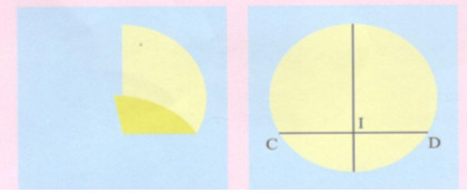 Lấy một tờ giấy cắt một hình tròn rồi gấp đôi lại như hình vẽ dưới đây :