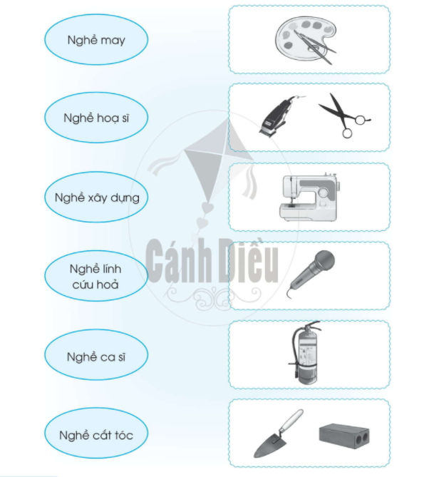Nối tên nghề với dụng cụ lao động phù hợp.