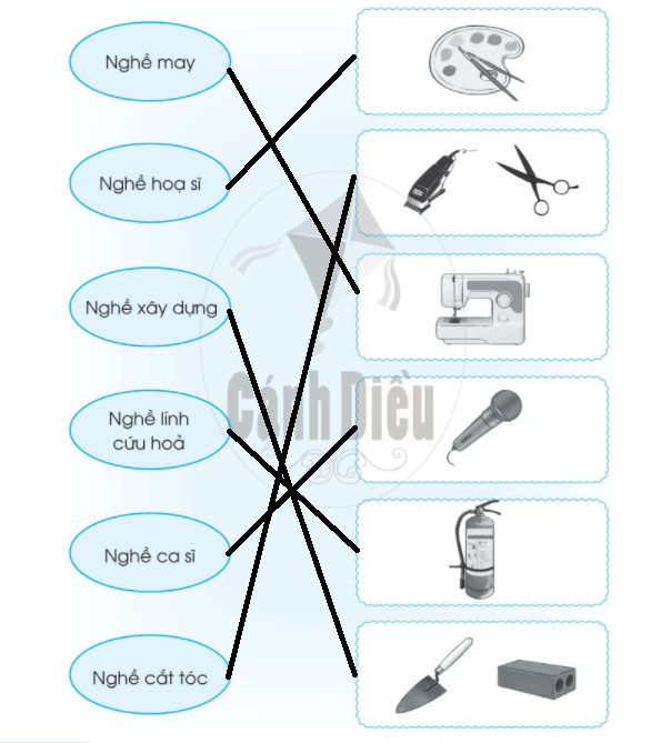 – Sau đó nối tên nghề với dụng cụ lao động phù hợp.