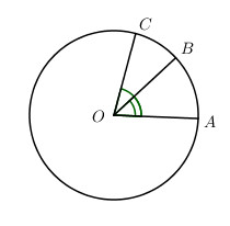 Trên cung nhỏ AC của đường tròn (O) lấy một điểm B. Hãy so sánh hai góc ở tâm \(\widehat {AOC}\) và \(\widehat {AOB}\) . Theo em trong hai cung  cung nào lớn hơn ?