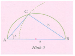 Cho trước tỉ số \(\dfrac{b}{a}\left( {b < a} \right)\). Hùng vẽ nửa đường tròn đường kính AB = a cm rồi vẽ đường tròn tâm B bán kính b cm cắt nửa đường tròn đường kính AB tại C (h.5).