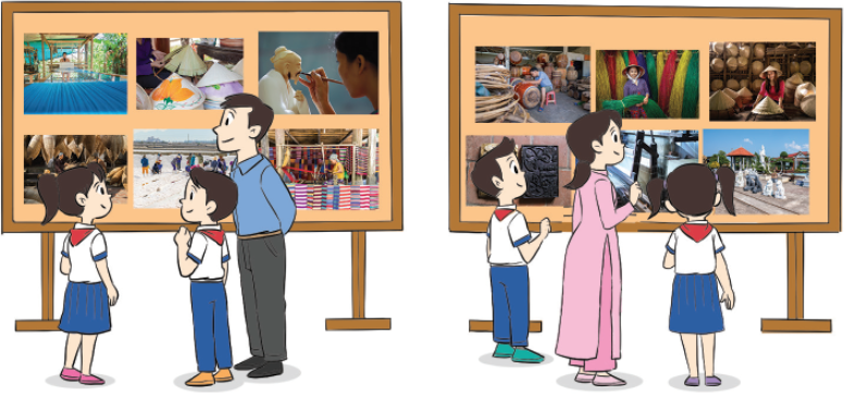 Tham gia triển lãm tranh, ảnh về nghề truyền thống của địa phương.