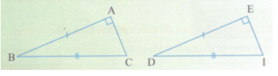 \(\eqalign{  & \Delta ABC,\widehat A = {90^0}  \cr  & \Delta EDI,\widehat E = {90^0}  \cr  & AB = ED,BC = DI \cr} \)