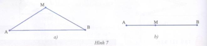 Giải bài tập Trong các hình 7a và 7b dưới đây, hãy dùng thước đo để so sánh AM + MB với AB.