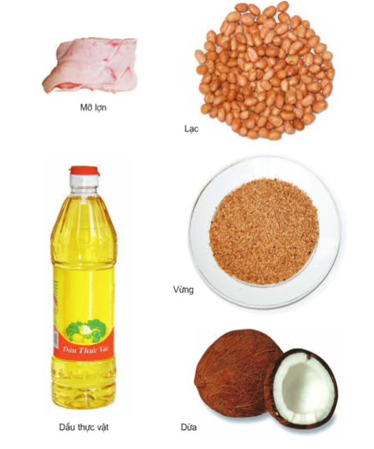 Em hãy quan sát bức tranh và liên hệ với cuộc sống hàng ngày, theo em đâu là những thực phẩm chứa nhiều chất béo.
