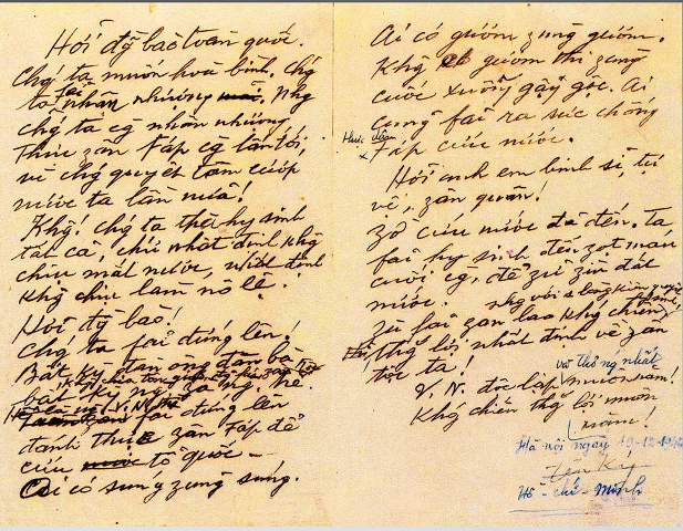 + Lời kêu gọi toàn quốc kháng chiến của Chủ tịch Hồ Chí Minh (19/12/1946).