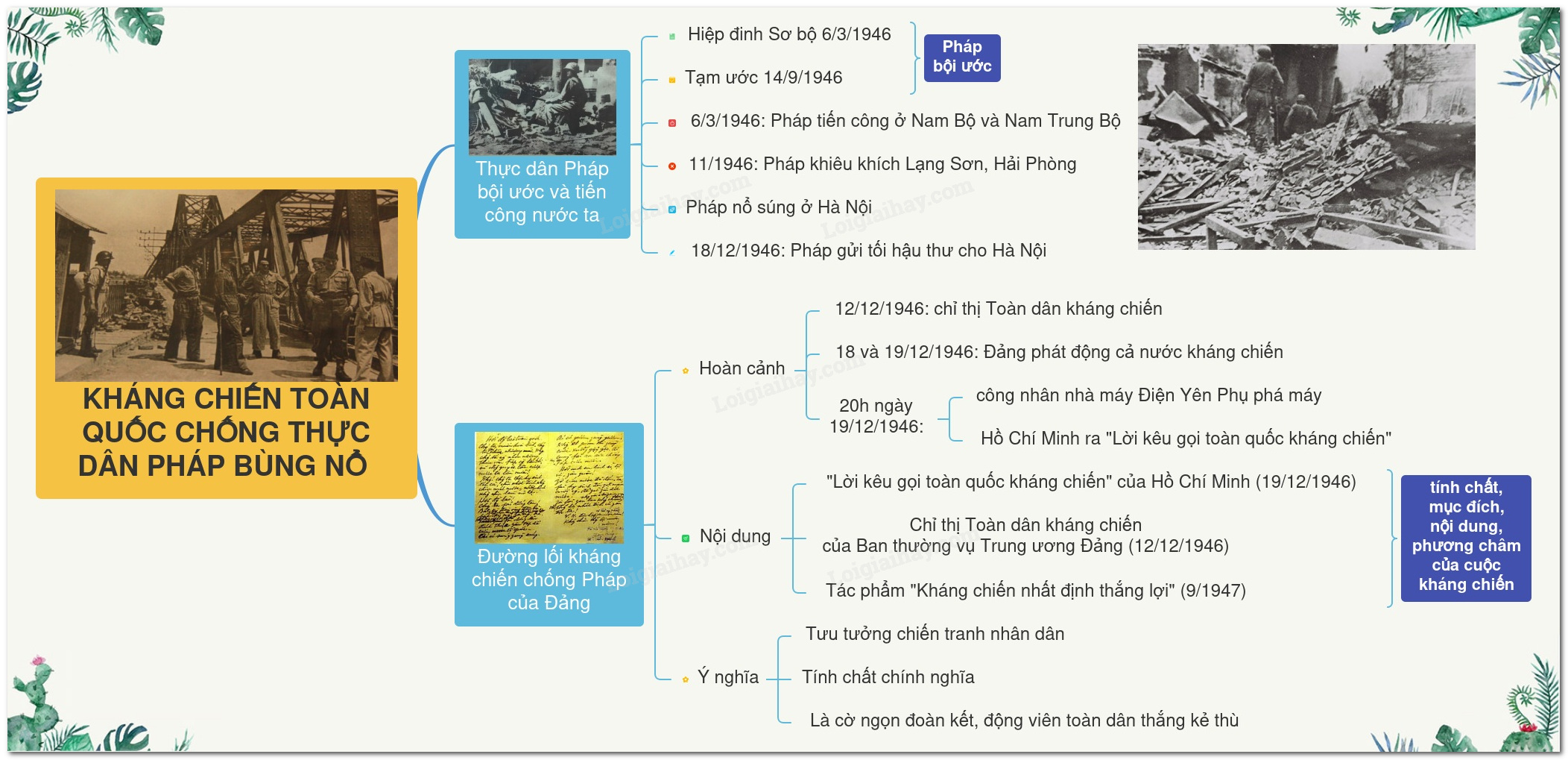 Sơ đồ tư duy Kháng chiến toàn quốc chống thực dân Pháp bùng nổ