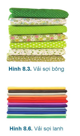 Quan sát Hình 8.3, 8.6, 8.9, 8.12 và kết hợp với thực tế, em hãy nêu nhận xét về các loại vải thường dùng trong may mặc hiện nay
