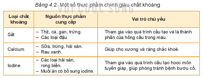 – Mỗi loại chất khoáng có vai trò tiêng đối với cơ thể và phần lớn đều có trong thực phẩm.