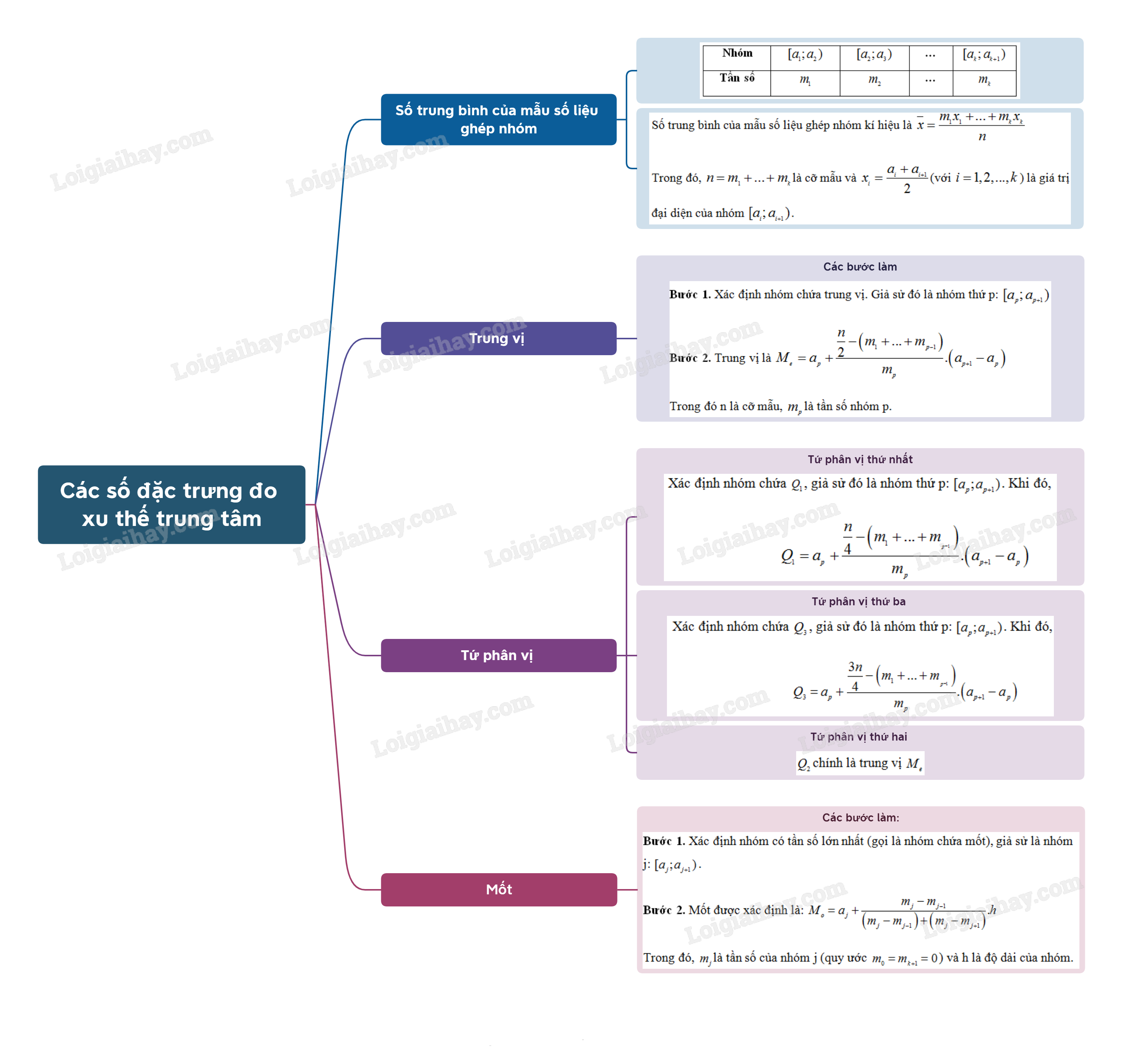 Trong đó n là cỡ mẫu, \({m_p}\) là tần số nhóm p.