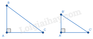 \(\begin{array}{l}\Delta ABC,\Delta A’B’C’:\\\left\{ \begin{array}{l}\widehat A = \widehat {A’} = {90^o}\\\frac{{AB}}{{A’B’}} = \frac{{BC}}{{B’C’}}\end{array} \right. \Rightarrow \Delta ABC \backsim \Delta A’B’C’\end{array}\)