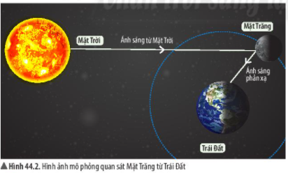 – Ánh sáng từ Mặt Trăng mà ta nhìn thấy có được là do ánh sáng Mặt Trời chiếu tới Mặt Trăng phản xạ xuống Trái Đất.
