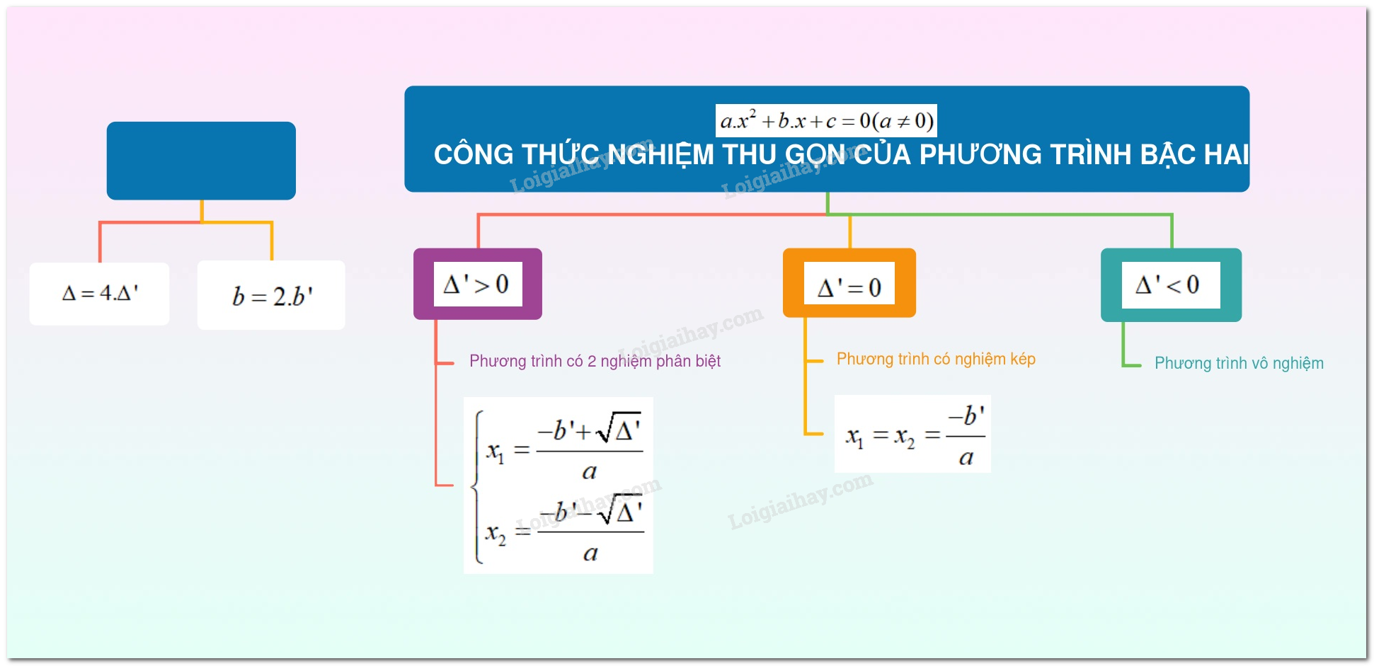 Xét phương trình bậc hai $a{x^2} + bx + c = 0{\rm{ }}(a \ne 0)$ với $b = 2b’$ và biệt thức $\Delta ‘ = b{‘^2} – ac.$