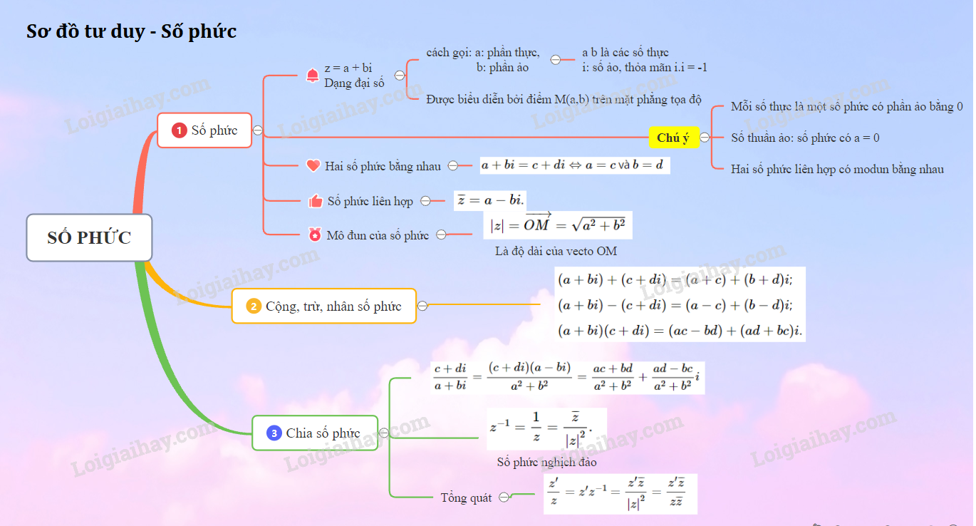 – Phép cộng và phép nhân số phức được thực hiện tương tự như đối với số thực, với chú ý  \(i^2= -1\) .