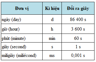 – Đơn vị đo thời gian là giây, kí hiệu là: s.