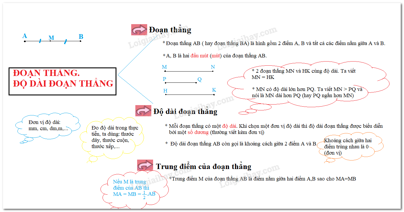 – Mỗi đoạn thẳng có một độ dài. Độ dài đoạn thẳng là một số dương.