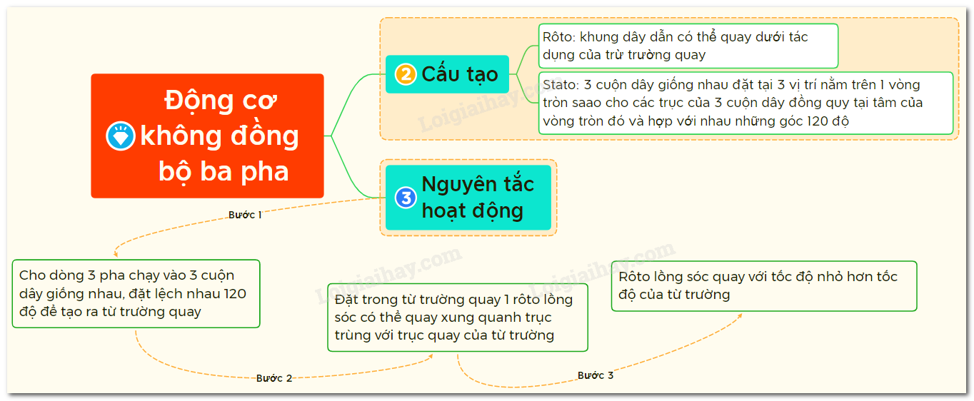 Sơ đồ tư duy về động cơ không đồng bộ ba pha – Vật lí 12