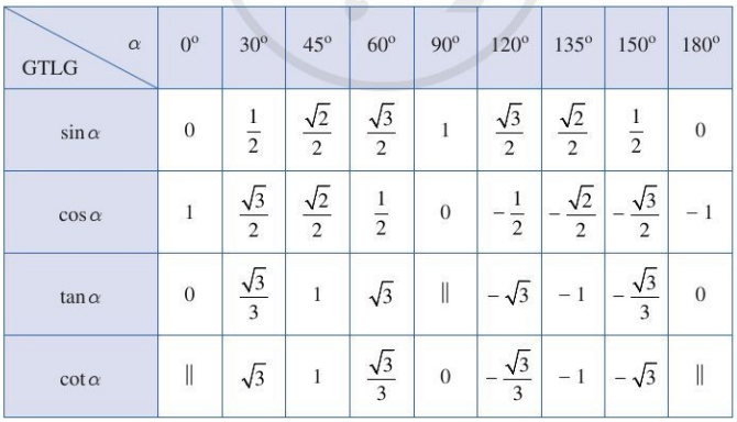 3. Các giá trị lượng giác của một số góc đặc biệt