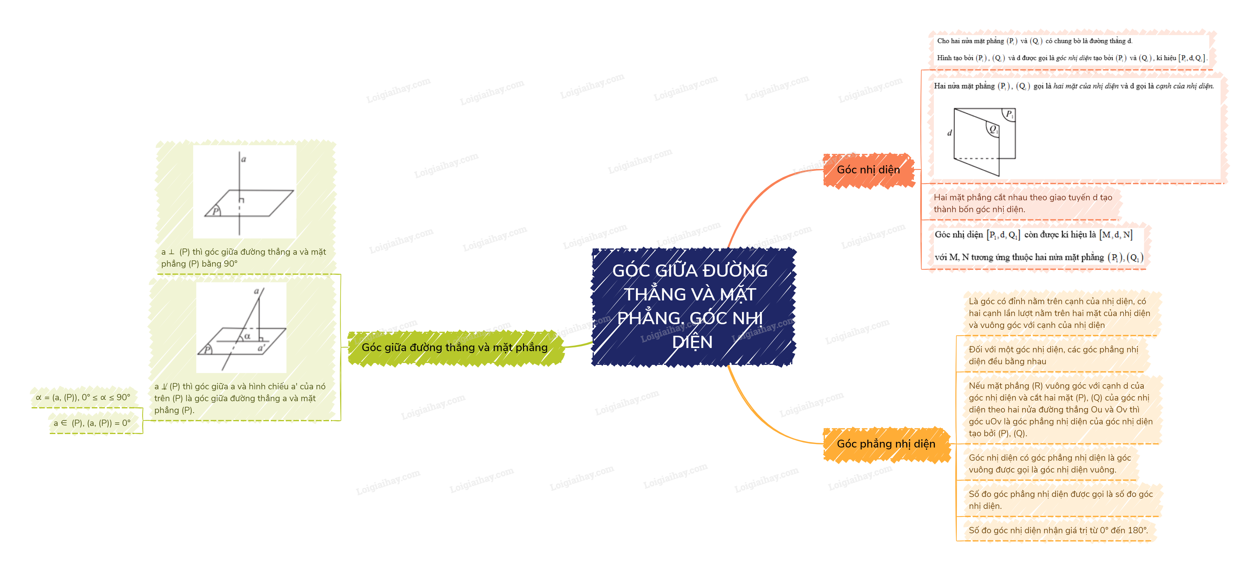 Lý thuyết Góc giữa đường thẳng và mặt phẳng. Góc nhị diện – Toán 11 Chân trời sáng tạo