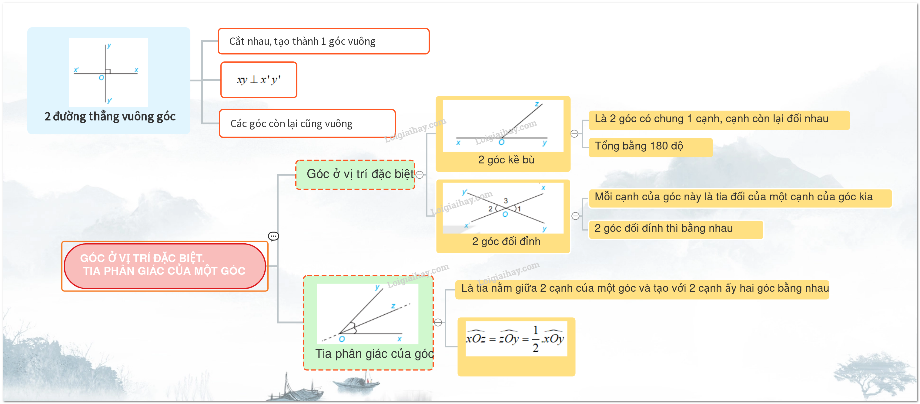 Hai góc có đỉnh chung, có một cạnh chung và hai cạnh còn lại nằm về hai phía của đường thẳng chứa cạnh chung đó.