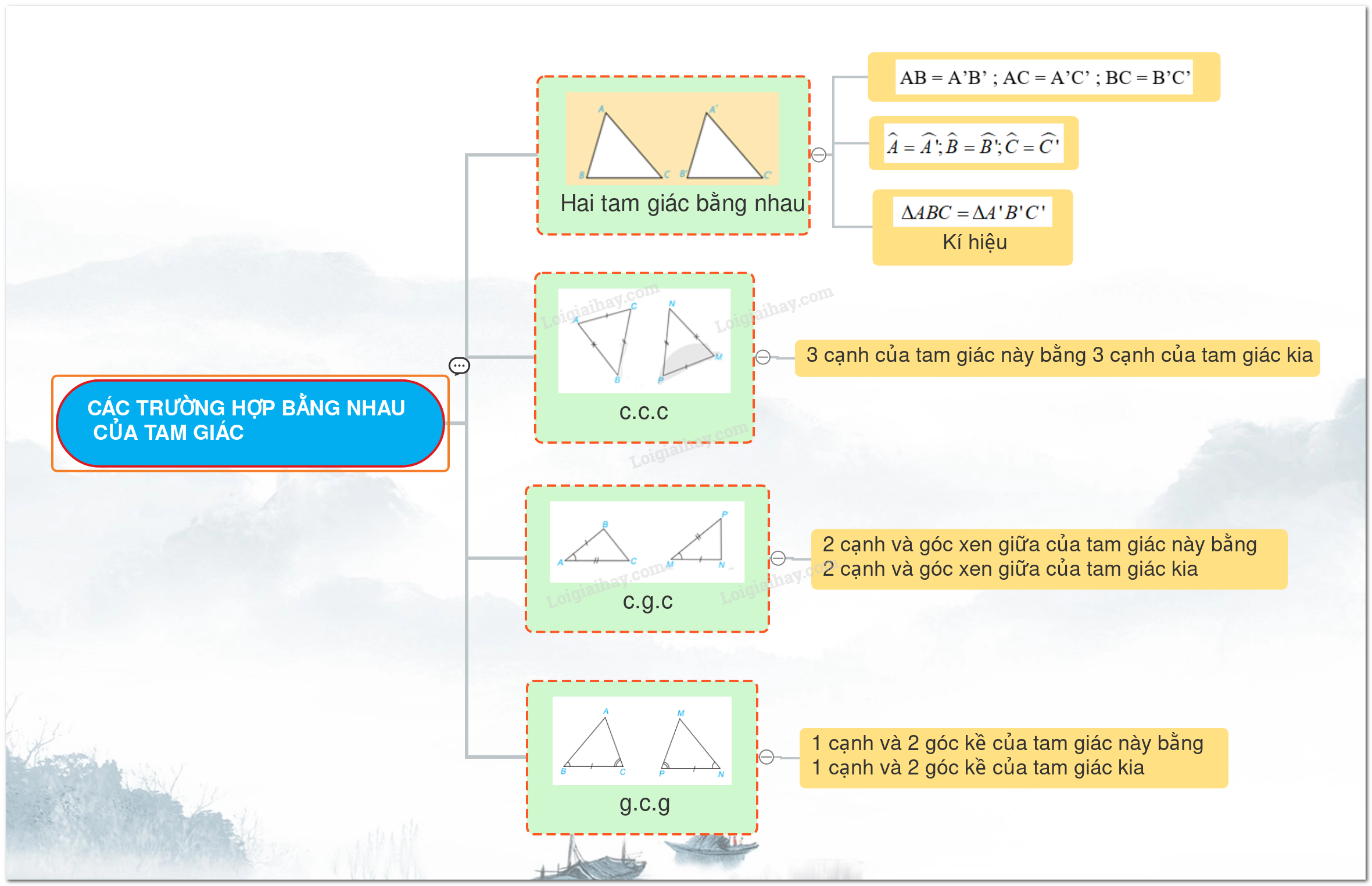 Hai tam giác ABC và A’B’C’ bằng nhau nếu chúng có các cạnh tương ứng bằng nhau và các góc tương ứng bằng nhau, tức là: