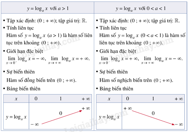Cho số thực a ( a > 0, a \( \ne \) 1). Hàm số \(y = {\log _a}x\) được gọi là hàm số lôgarit cơ số a.
