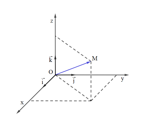 \(\overrightarrow{OM}= x.\overrightarrow{i}+y.\overrightarrow{j}+z.\overrightarrow{k}\),