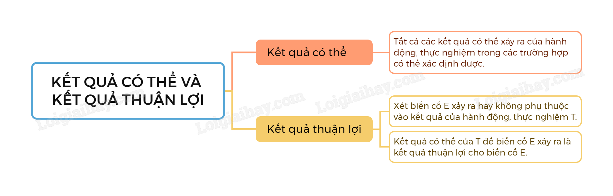 Một kết quả có thể của T để biến cố E xảy ra được gọi là kết quả thuận lợi cho biến cố E.