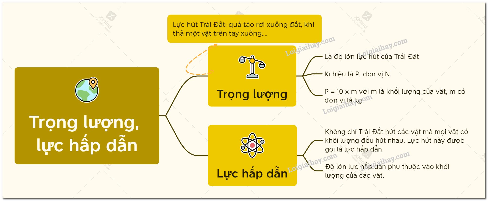 Sơ đồ tư duy về lực hấp dẫn và trọng lượng – KHTN 6 – Chân trời sáng tạo
