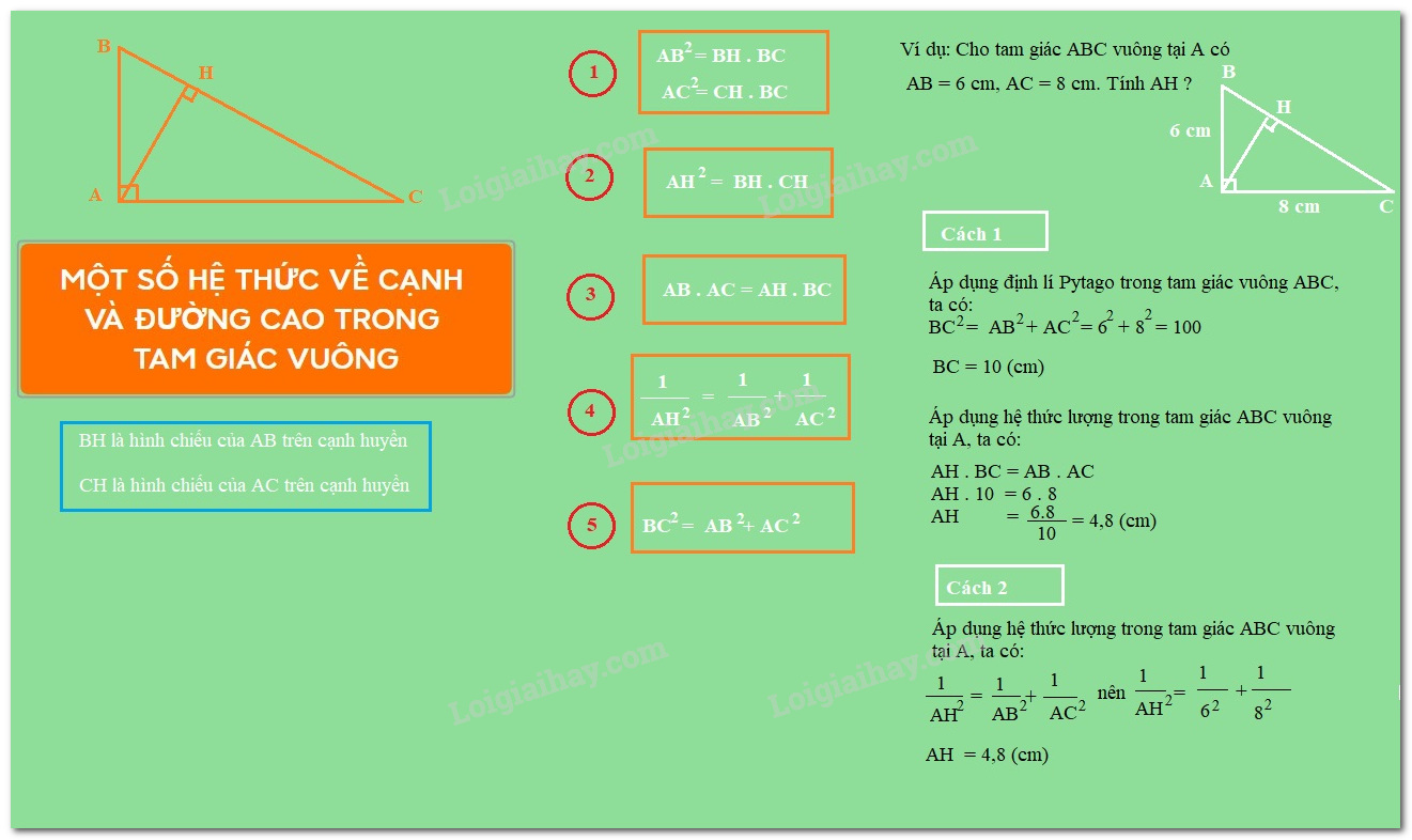 1. Hệ thức về cạnh và đường cao trong tam giác vuông