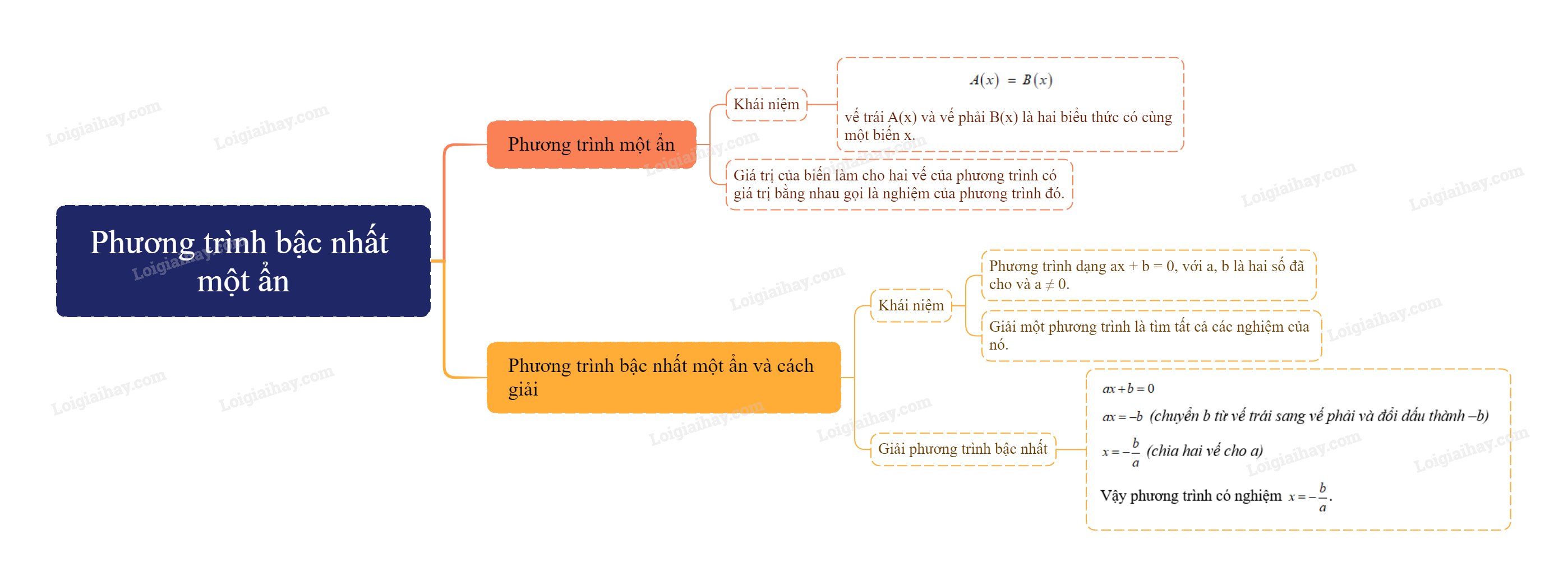Phương trình bậc nhất ax + b = 0 (\(a \ne 0\)) được giải như sau: