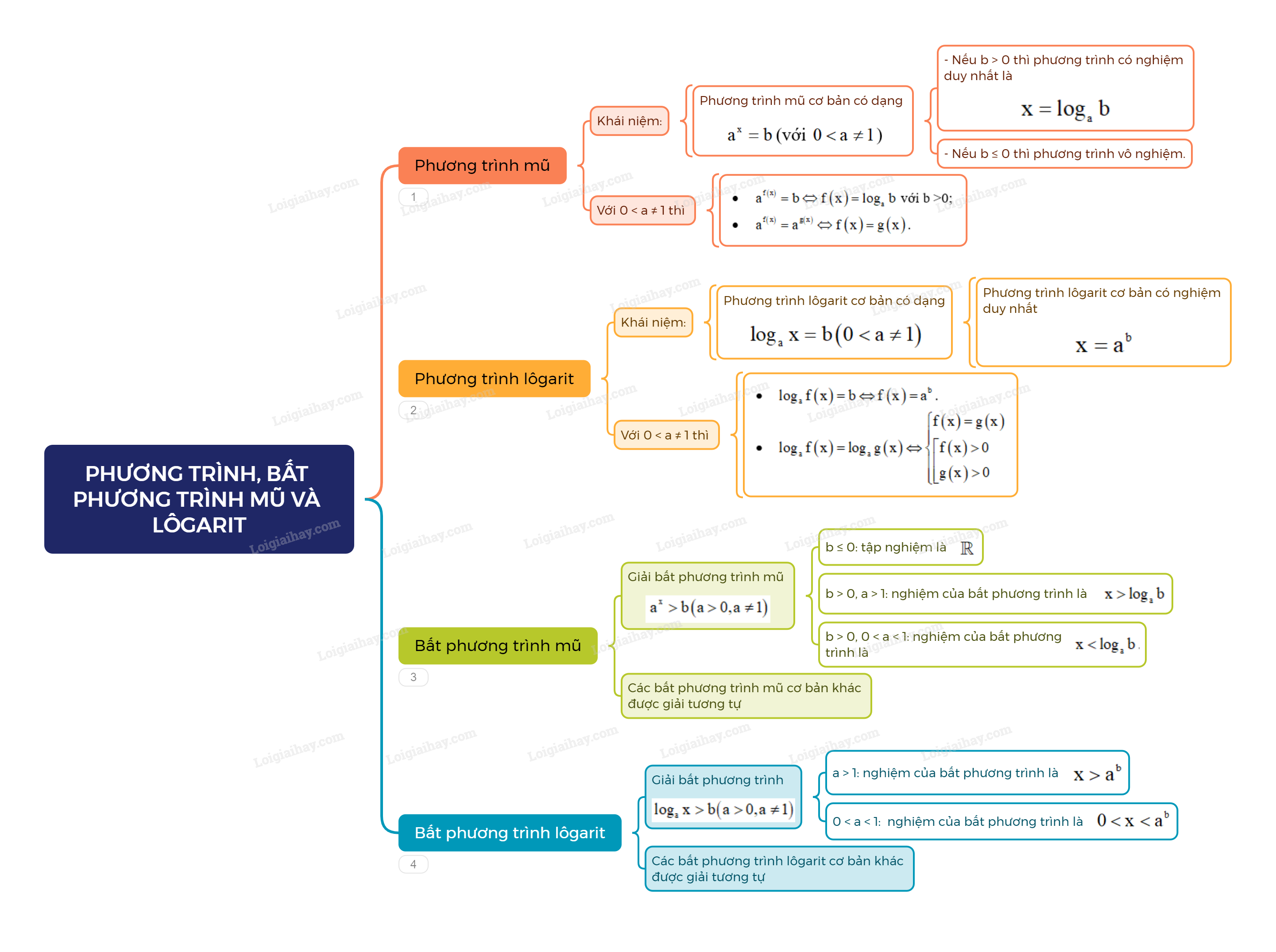 • \({a^{f\left( x \right)}} = b \Leftrightarrow f\left( x \right) = {\log _a}b\) với b >0;