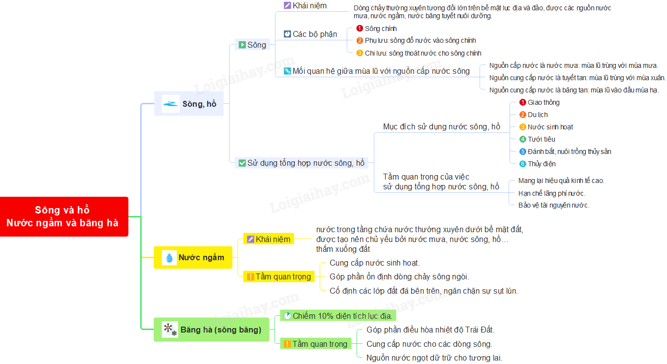 Sơ đồ tư duy sông và hồ. Nước ngầm và băng hà