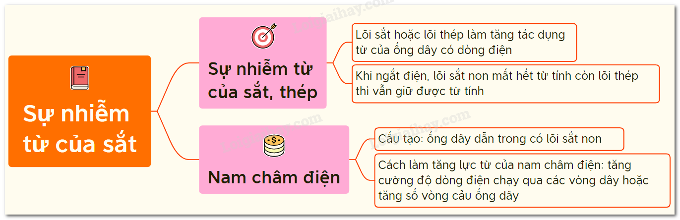 Sơ đồ tư duy về sự nhiễm từ sắt, thép – nam châm điện