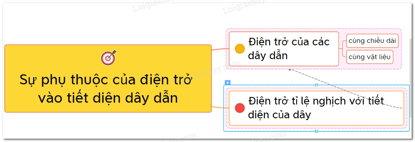 Sơ đồ tư duy về sự phụ thuộc của điện trở vào tiết diện dây dẫn – Vật lí 9