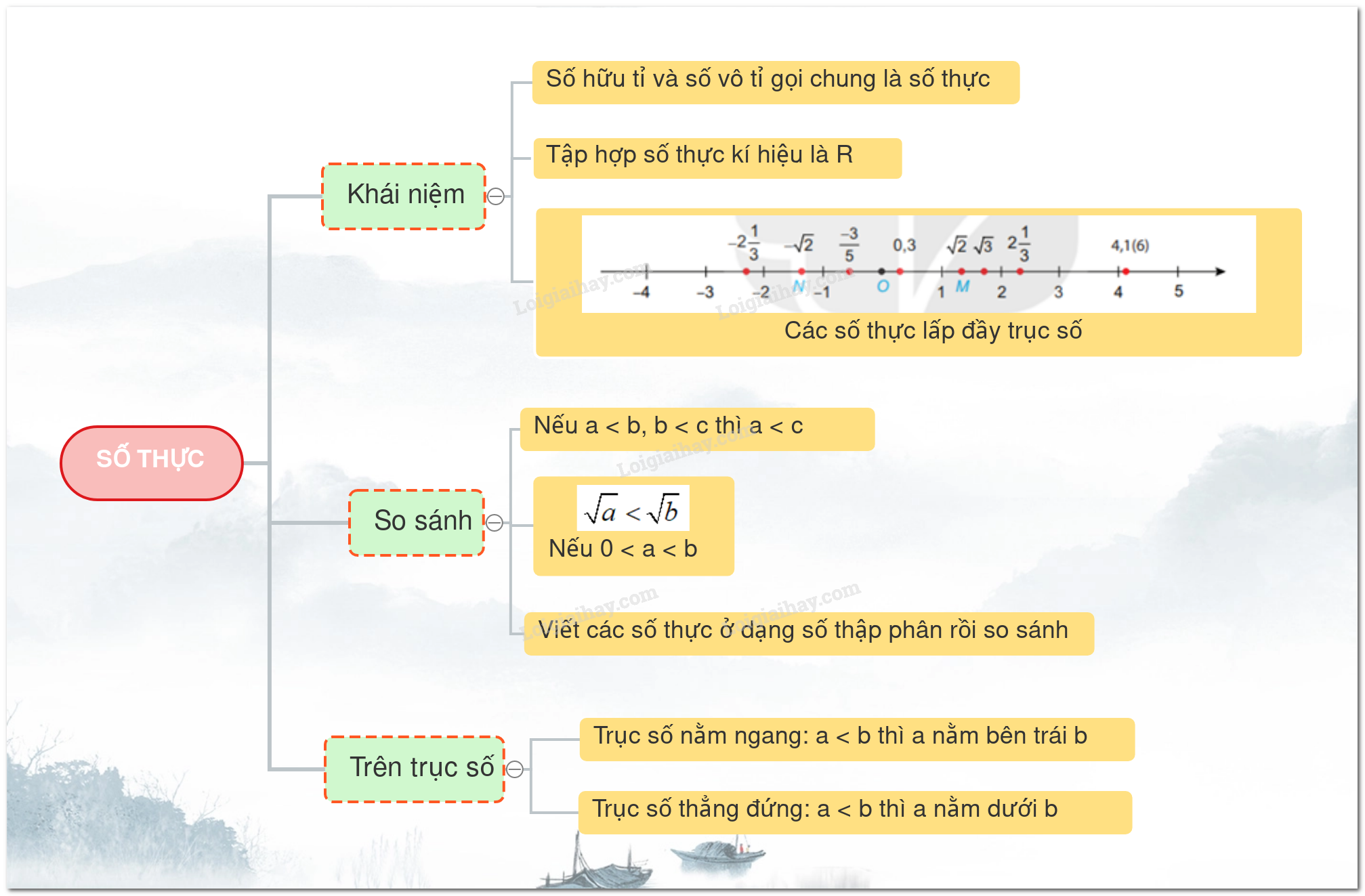 + Với 2 số thực a và b bất kì, ta luôn có hoặc a = b, hoặc a < b, hoặc a > b