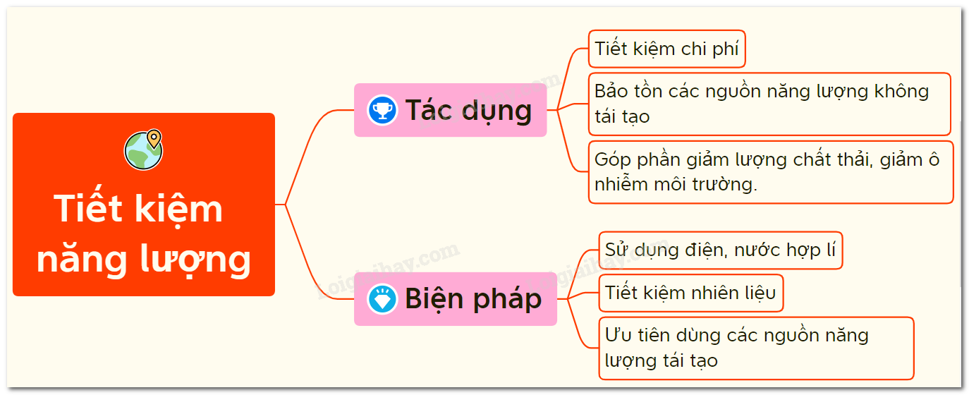 Sơ đồ tư duy về tiết kiệm năng lượng – KHTN 6 – Kết nối tri thức với cuộc sống