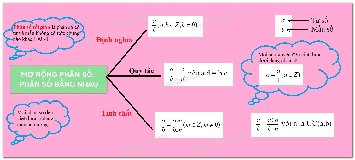 $\dfrac{a}{b} = \dfrac{{a.m}}{{b.m}}$ với $m \in Z$ và $m \ne 0$$\dfrac{a}{b} = \dfrac{{a:n}}{{b:n}}$với $n \in $  ƯC$\left( {a;b} \right)$.