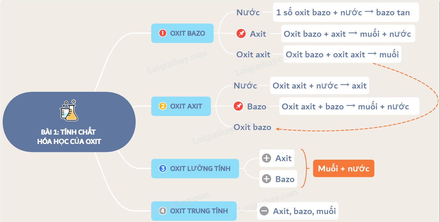 Sơ đồ tư duy: Tính chất hóa học của oxit. Khái quát về sự phân loại oxit.
