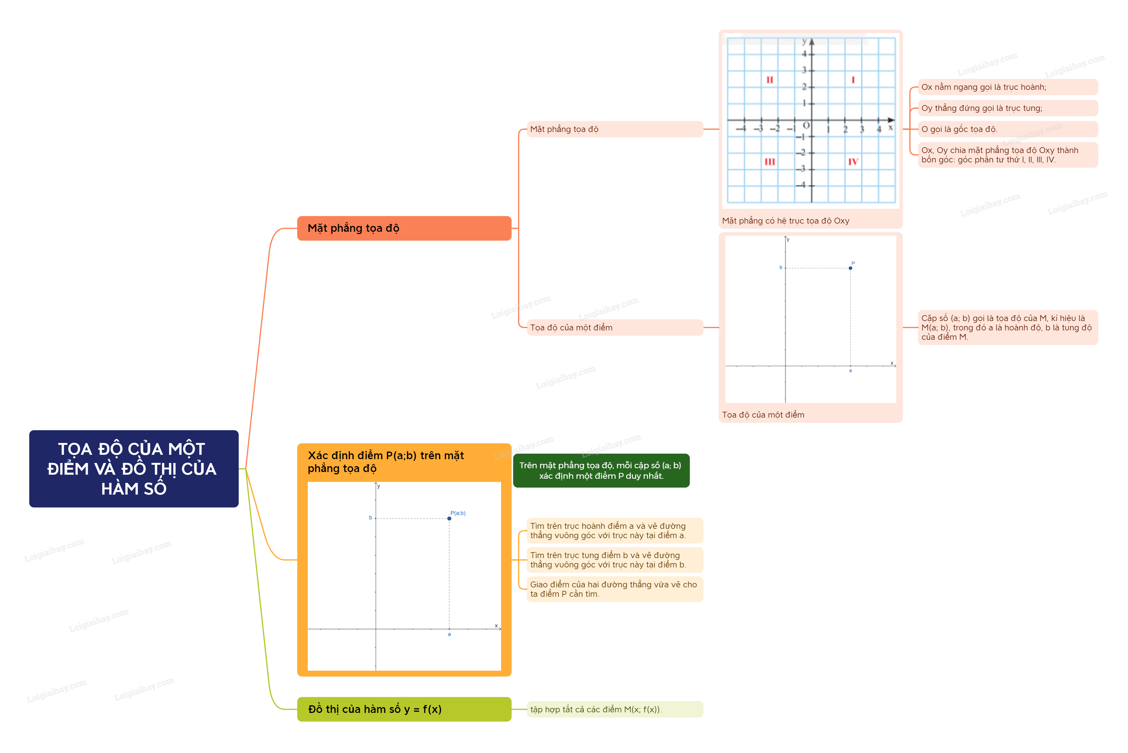 Hai trục tọa độ Ox, Oy chia mặt phẳng tọa độ Oxy thành bốn góc: góc phần tư thứ I, II, III, IV.