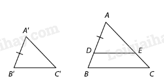 \(\begin{array}{l}\Delta ABC,\Delta A’B’C’,\frac{{A’B’}}{{AB}} = \frac{{B’C’}}{{BC}} = \frac{{A’C’}}{{AC}}\\ \Rightarrow \Delta A’B’C’ \sim \Delta ABC\,(c.c.c)\end{array}\)