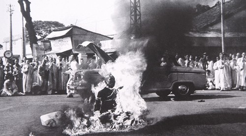 Hòa thượng Thích Quảng Đức tự thiêu để phản đối chính quyền Sài Gòn