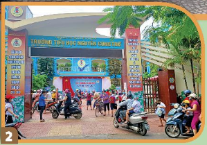 Nhớ lại những hoạt dộng diễn ra trước cổng trường và trả lời câu hỏi