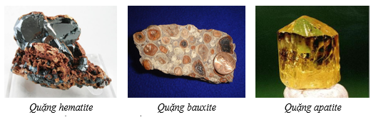 + Quặng: quặng sắt chế tạo gang, thép dùng trong xây dựng; quặng bauxite sản xuất nhôm dùng cho chế tạo máy bay