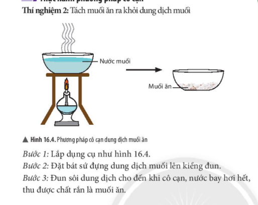 + Phương pháp cô cạn: Dùng để tách chất rắn tan (không hóa hơi khi gặp nhiệt độ cao) ra khỏi dung dịch hỗn hợp lỏng
