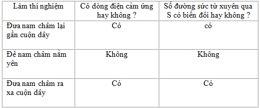 Dòng điện cảm ứng xuất hiện trong cuộn dây kín đặt trong từ trường của một nam châm khi số đường sức từ qua tiết diện S của cuộn dây tăng hay giảm.